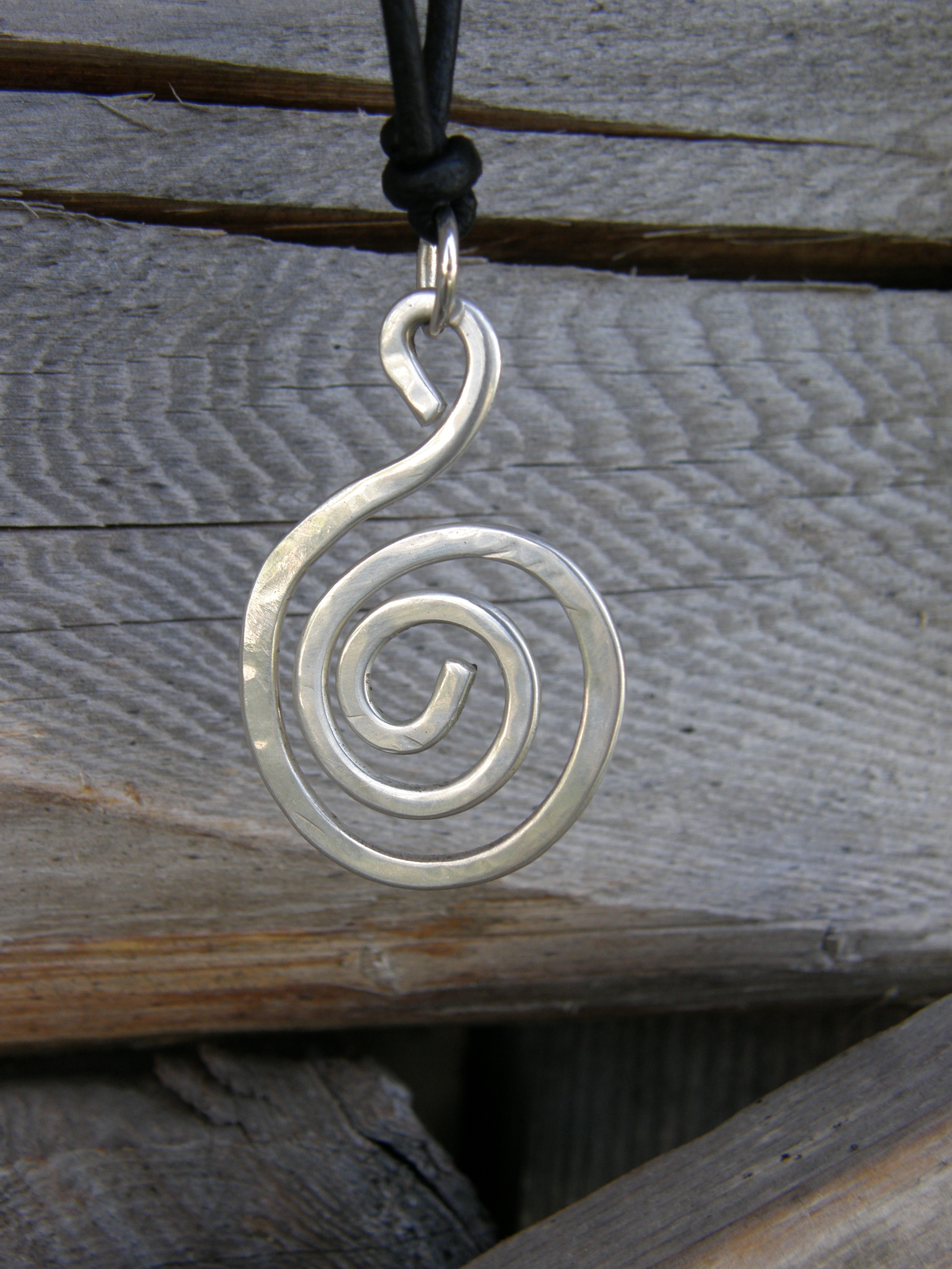 Ibland är det trevligt att kunna designa smycken! Stod framför spegeln en morgon strax efter midsommar, och kände att jag saknade ett enkelt silversmycke att matcha solbrännan, gärna kombinerat med svart läder. På kvällen svängde jag ihop det här (och ett till då jag engång var igång, som jag förde till Hårsmedjan): 1,5 mm silvertråd, hamrade, filade och polerade lite (eller mycke…) — färdigt! Visst har jag idéer för lite mera invecklade saker också, men de tar sen flera kvällar att göra…