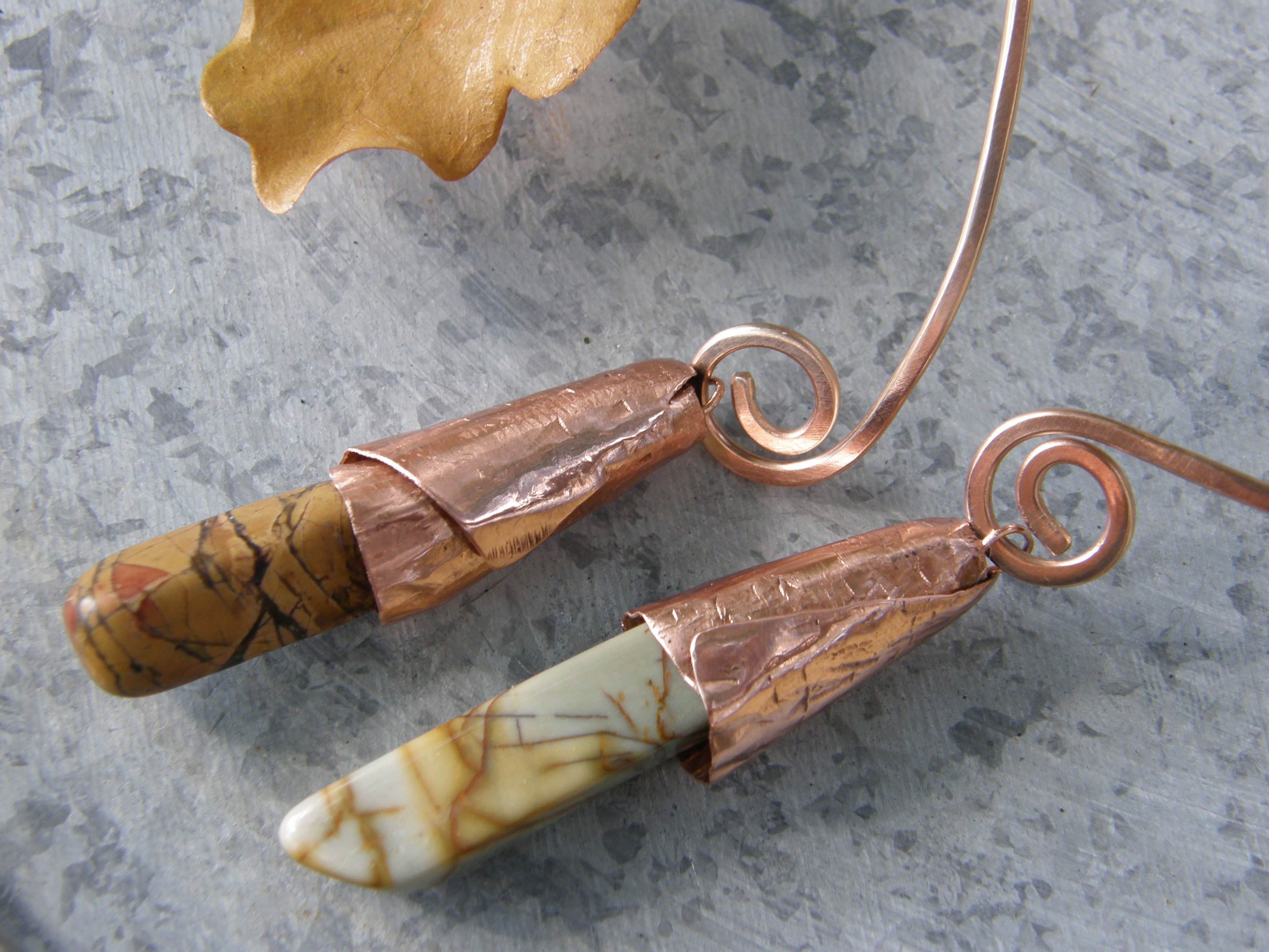 Jag kikade i några modetidningar i somras, modell lite mera seriösa, typ… och såg samma styva halsband i många varianter. Tänkte att ett sånt kunde ju vara kul att göra. Jag valde bronstråd, eftersom det är den hårdaste tråd jag har — ett annat alternativ skulle vara att såga ut en tunn ”krage” i metallplåt. Sen blev jag lite kreativ med kopparplåten från pappas garage…