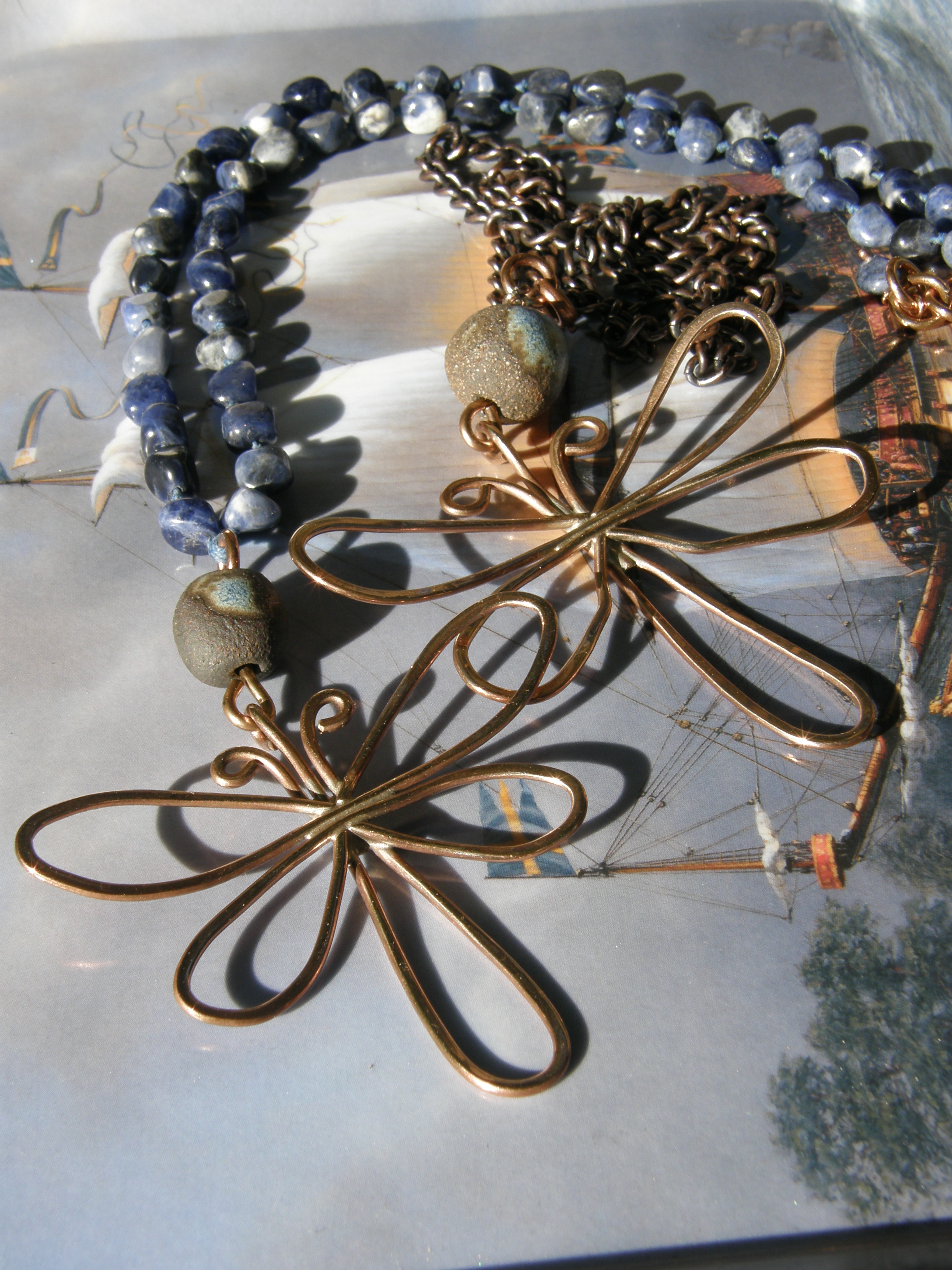 Mera sländor Publicerat den 21 oktober, 2014 …beställningsarbete, den här gången i brons. Bronstråd, egna keramikpärlor. Kopparkedja, och sodalit på blå vaxad lintråd. Dela detta: Klicka för att dela på X (Öppnas i ett nytt fönster) X Klicka för att dela på Facebook (Öppnas i ett nytt fönster) Facebook Gilla Laddar in … Relaterade