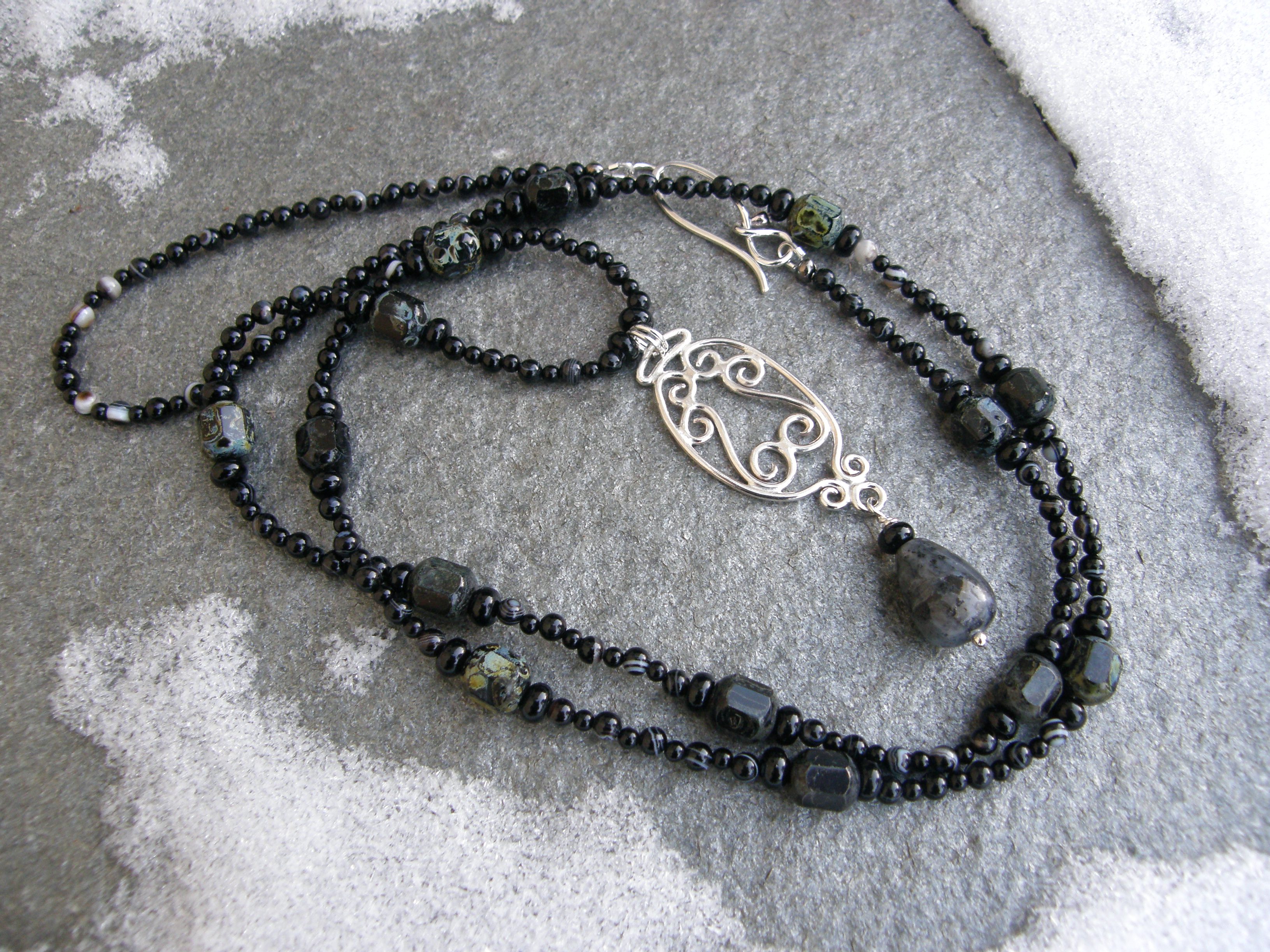 Annas julklapp Publicerat den 7 januari, 2015 Ett Downton Abbey-inspirerat halsband åt Anna… väldigt långt (kan också bäras dubbelt)! Hänge i sterling silver (hoplödd 1,5 mm:s tråd). Onyx och sardonyx, tjeckiska facetterade glaspärlor, norsk månstensdroppe. Dela detta: Klicka för att dela på X (Öppnas i ett nytt fönster) X Klicka för att dela på Facebook (Öppnas i ett nytt fönster) Facebook Gilla Laddar in … Relaterade